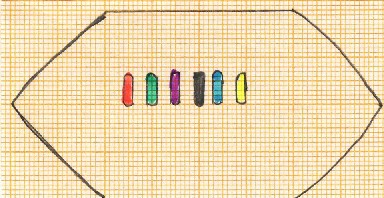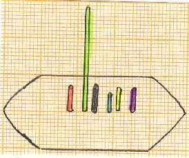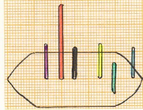Wir haben nun das Anforderungsprofil einiger Sportarten mit Balkendiagrammen charakterisiert! Nachfolgend soll das Leistungsbild einzelner Personen graphisch dargestellt werden! In nachfolgenden Grafiken stellen die (mehr oder weniger) ovalen Grundflächen eine konkrete Beispielperson, die sich darauf befindlichen farbigen Stäbe die jeweiligen motorischen Fähigkeiten und deren Ausprägungsgrad dar! Der schwarze Stab in der Mitte steht für die technischen Fähigkeiten! Die farbigen Stäbe stehen für jeweils eine motorische Fähigkeit! Der Faktor Technik befindet sich in der Mitte, weil die gesamten (motorischen) Fähigkeiten nur im Rahmen der ausführbaren Techniken zur Geltung gebracht werden können! Dabei gibt es zwei Parameter! Erstens kann ich die Quantität der vorhandenen Fähigkeiten aufzeigen: Je länger der Stab einer jeweiligen Farbe ist, umso höher ist das betreffende Leistungsmerkmal ausgeprägt!