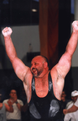 Dies sind bspw. Länge der Gliedmaßen, Breite von Schulter und Hüfte, Wölbung der Brustwirbel und somit Umfang des Brustkorbes, spezifische Beschaffenheiten der Gelenke (Bewegungsradius, Gelenkstatik) und die daraus resultierenden Hebelwirkungen. 4. Koordinative Aspekte: Bei anspruchsvollen Bewegungsabläufen (etwa beim Reißen und Stoßen im Gewichtheben) kann die optimale Kraftentfaltung nur durch einwandfreie technische Ausführung erreicht werden! Die Präsenz der erforderlichen Muskelkraftleistung allein reicht hier nicht aus! Nachfolgende Abbildungen zeigen zwei konkrete Beispiele von sehr leistungsstarken Bankdrückern, deren erstaunliche Kraftleistungen weit über das hinausgehen, was ihnen in Bezug auf ihre Muskelmasse zuzutrauen wäre! Aus der Tatsache dass Kraftleistungen (und andere motorische Leistungen) auch aus eher unterschwelligen Sekundärfaktoren mit-resultieren ergibt sich der Effekt, dass sich physische Leistungen im zwischenmenschlichen Vergleich nicht immer linear zum Ausprägungsgrad der ihnen zugrunde liegenden primären Organfunktionen befinden! Mehr Muskelmasse (gegenüber einer Vergleichsperson) bedeutet in keinem Fall IMMER auch höhere Kraftwerte! Zumindest nicht in einem zwingend proportionalem Verhältnis! Gerade im Bankdrücken fallen auch anatomische, den Knochenbau betreffende Faktoren stark ins Gewicht, z.B. die Gelenkstatik, die Schulterbreite, der Umfang des Brustkorbes und die Länge der Arme (kurze Arme und ein vom Knochenbau her weiter Brustkorb sind besonders vorteilhaft, da sie sie den Radius der auszuführenden Bewegung verringern).
